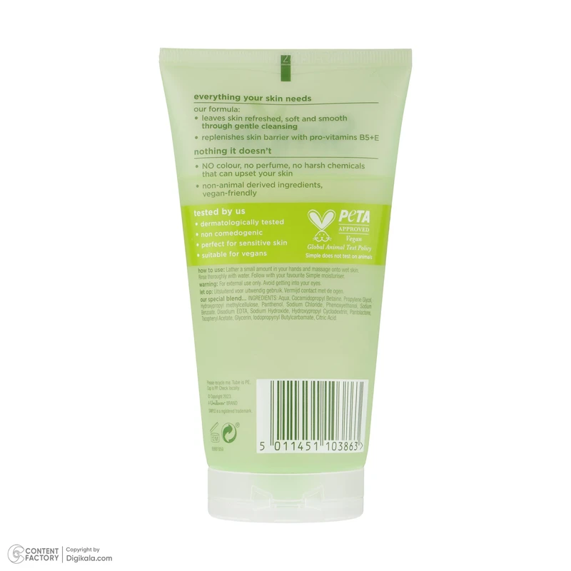 فیس واش رفرشینگ سیمپل (Simple Refreshing Facial Wash Gel) یک ژل شستشوی صورت فوقالعاده ملایم از برند سیمپل است که با مواد دوستدار پوست و فرمول ساده و ایمن (فاقد الکل مضر، عطر مصنوعی، رنگ، صابون، پارابن، فتالات و روغن معدنی) پوست را عمیقاً پاکسازی میکند، بدون اینکه چربی طبیعی پوست را از بین ببرد یا باعث خشکی/تحریک شود. این محصول با آب تصفیه شده سهگانه و ویتامینها، پوست را آبرسانی، تغذیه و شاداب میکند – ایدئال برای روتین روزانه و شبانه انواع پوست بهویژه پوستهای حساس!